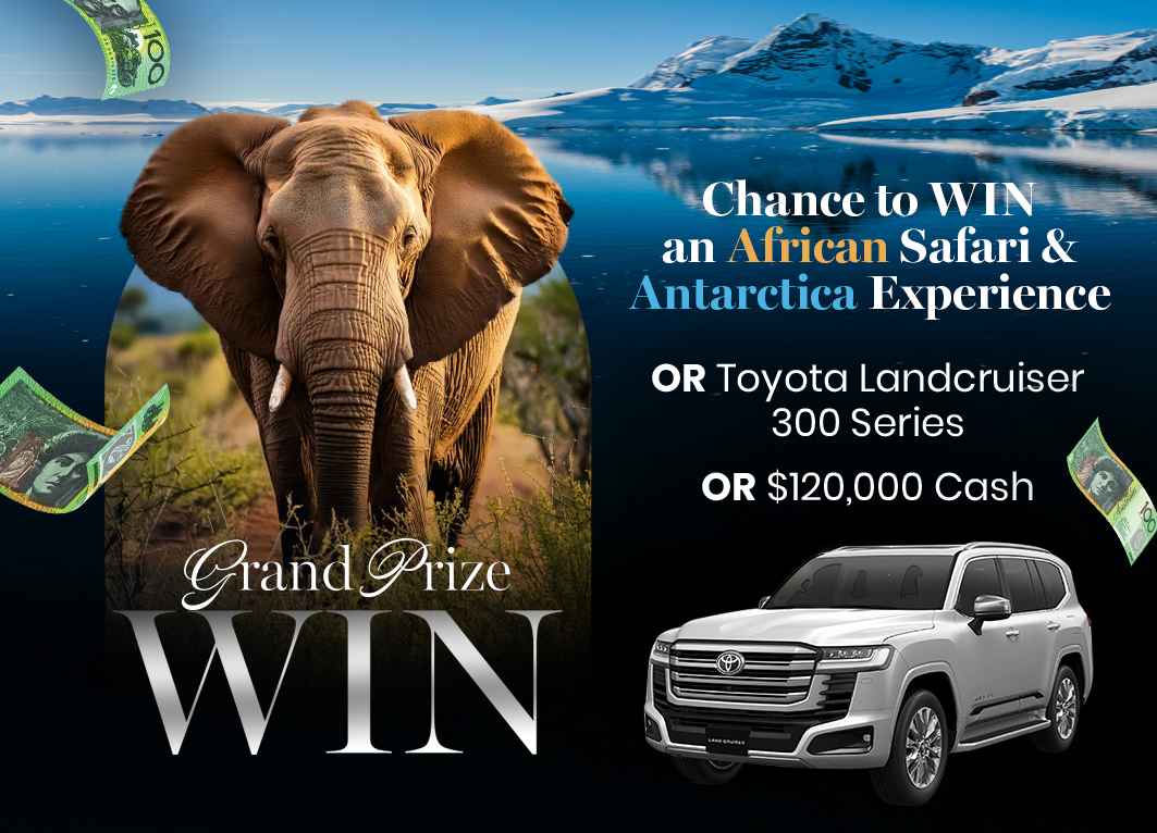 You’re just one ticket away from $160,000 in prizes — including a once-in-a-lifetime travel experience’s, a luxury car, or a shining stack of cash/gold.
