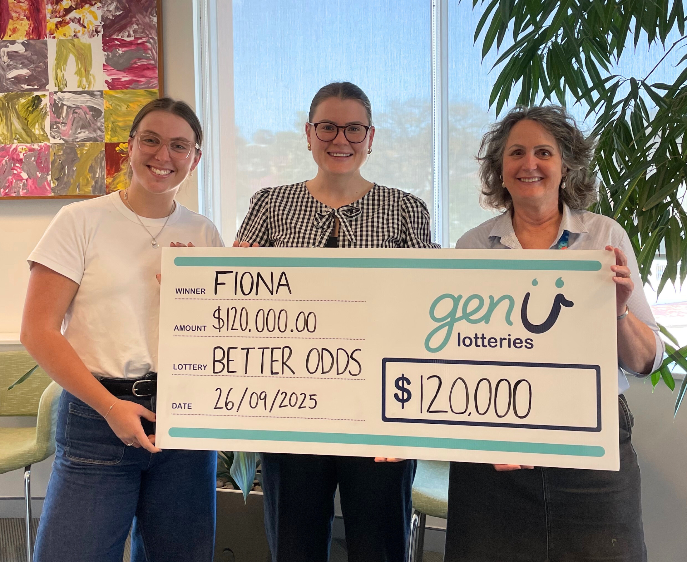 💬 “I have a close friend who lives with a disability, so supporting genU through the Better Odds Lottery meant a lot to me. Never in a million years did I think I’d win – let alone $120,000! It’s such an incredible feeling to give back and receive something life-changing in return.”