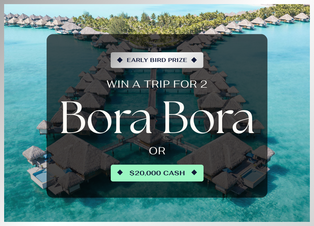 Win a dream escape to Bora Bora for two people, including flights and accommodation — or take $20,000 cash.