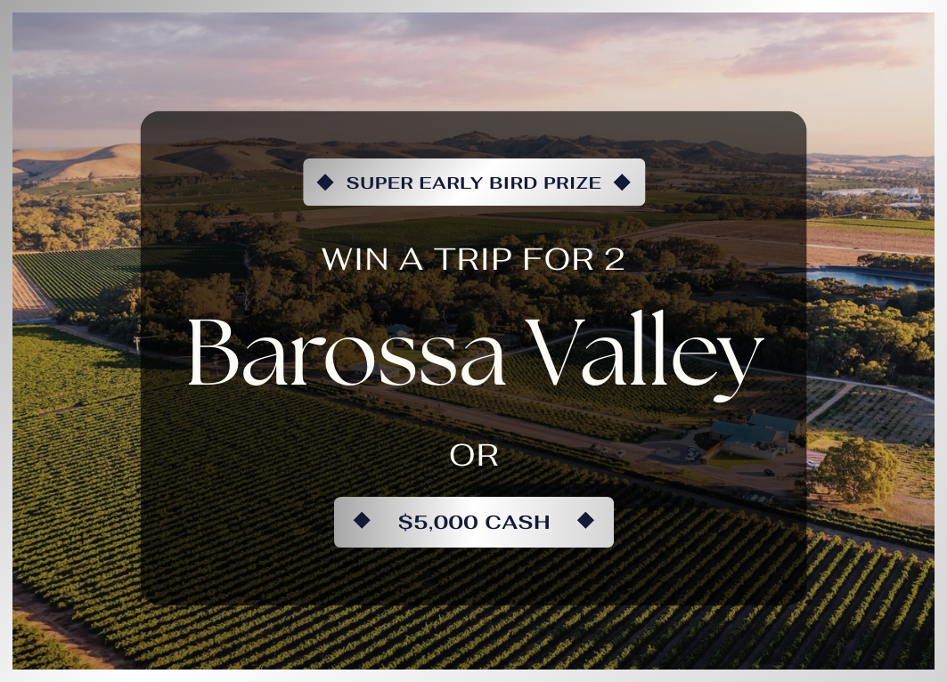 Enjoy a luxury escape to the Barossa Valley, South Australia including flights and accommodation, or take $5,000 cash.